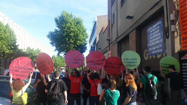 Ayer, aprovechando la visita de Mariano Rajoy a Barcelona, las PAHs Catalanas y la Alianza contra la Pobreza Energética realizaron dos escraches silenciosos en los actos en los que participaba. A las 18h de la tarde, un grupo de personas de la PAH se dirigieron al Centro de ‘Estudios Monlau para entregar una Carta a Mariano Rajoy, pidiendo que su grupo reconsiderase su posición y apoye la ILP contra los desahucios y la pobreza energética sin conseguirlo.