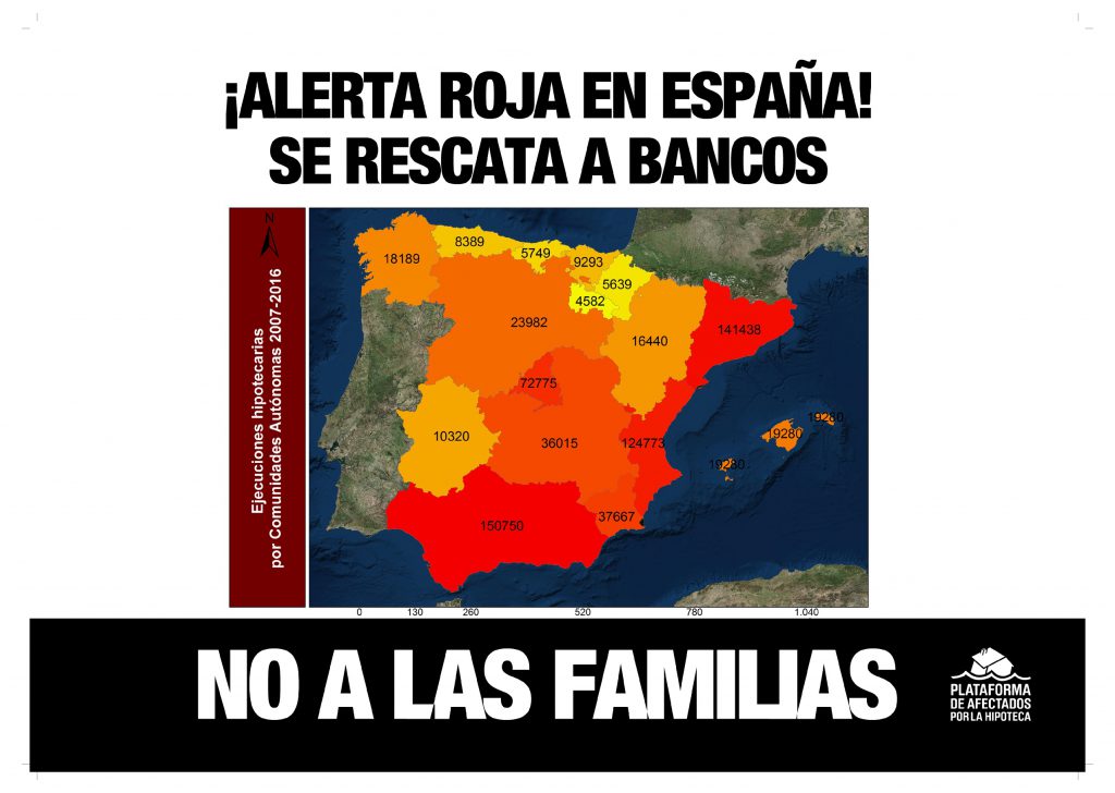 Entonces el gobierno del PP bloqueó la voz de las familias, y en lugar de legislar los mecanismos que proponíamos, rescataron a la banca con dinero público de todas nosotras. Para tratar de maquillar su actuación criminal sacaron el Código de Buenas Prácticas, una reforma simbólica que prometieron que solventaría la emergencia habitacional, pero que a día de hoy sólo ha solucionado la situación del 0.5% de las familias afectadas. Desde 2008 hasta hoy, y frente a la impasividad del gobierno, 700.000 familias han pasado por procesos de ejecución hipotecaria según datos del Consejo General del Poder Judicial.