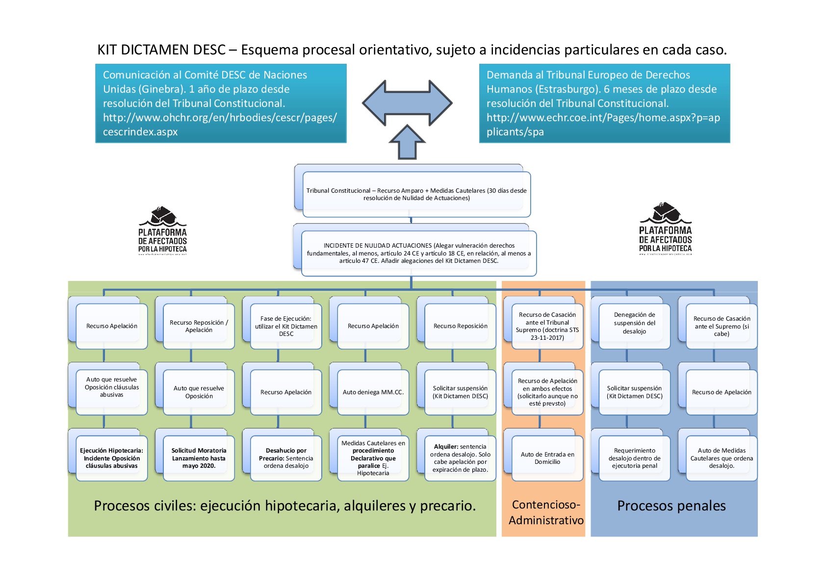 ATENCIÓN: en todos los casos, si cabe recurso y hay plazo para interponerlo contra la última resolución recibida que ordena el desalojo, el “Kit Dictamen DESC” debe articularse como parte del recurso que se interponga. Es decir, el cuerpo del texto del recurso debe incorporar las alegaciones que hemos desarrollado en el “Kit”.