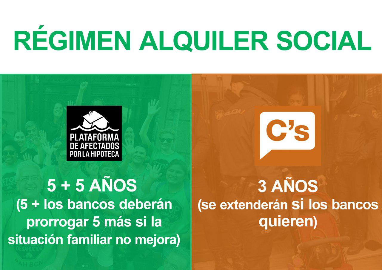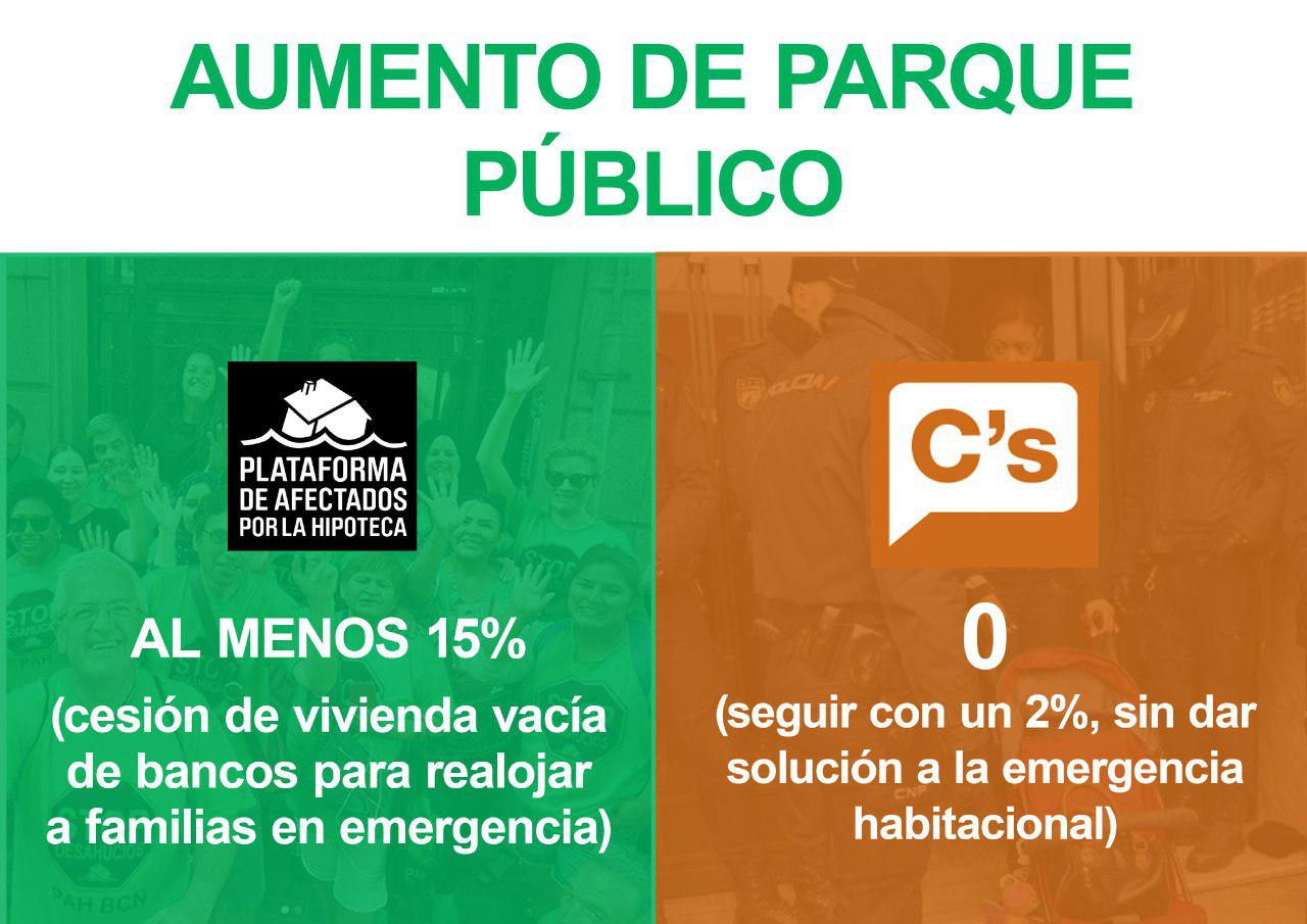 Un partido como Ciudadanos, que miente sobre sus responsabilidades políticas, es un partido que solo piensa en su imagen, mientras cada día siguen desahuciando a 173 familias. Por si fuera poco el engaño perpretado, Ciudadanos ha respondido con una campaña de desprestigio a la Ley Vivienda PAH, promoviendo a la vez una ley propia de segunda oportunidad: una ley para la que no han consultado con las familias, que no incluye medidas retroactivas para cancelar deudas de por vida de familias que han sido desahuciadas, que no incluye ninguna medida para acabar con los desahucios y que pretenden utilizar como coartada para impedir el debate democrático de la Ley Vivienda PAH.