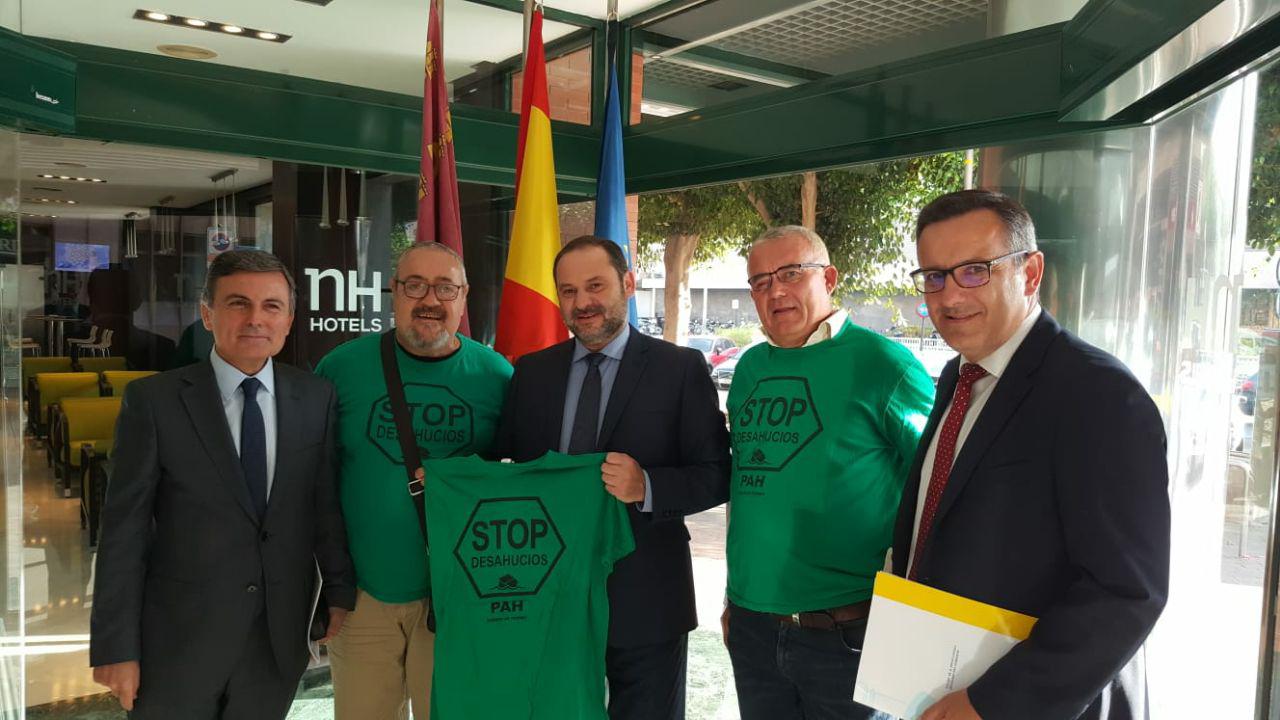 En reunión celebrada esta mañana en Murcia entre el Ministro de Fomento José Luis Ábalos, el Secretario de Estado de Infraestructuras Pedro Saura, el Delegado del Gobierno en Murcia Diego Conesa y representantes de la PAH, el ministro ha anunciado que el PSOE votará el próximo martes a favor de la toma en consideración de la Ley de Vivienda de la PAH, con lo que, prácticamente se garantiza que saldrá adelante, a falta de confirmar los apoyos ya comprometidos de PDeCat y PNV, que se sumarían a los de Unidas Podemos, ERC, Compromís y EH-Bildu que suscribieron el registro de la ley.