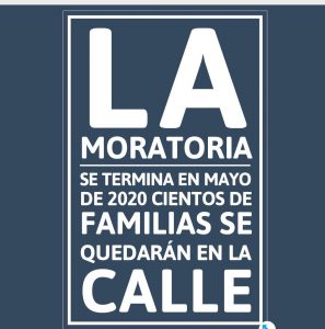 Una de las medidas a tomar, debería ser la prolongación de las Moratorias. Y las viviendas que aún no han sido adjudicadas y están en proceso de reestructuración de una quita de la deuda, según sea la situación familiar.