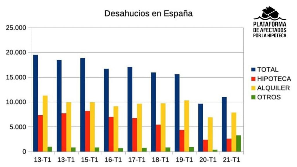 Una vez publicados los últimos datos de CGPJ, en el primer trimestre de 2021 aumentan los desahucios, tanto hipotecarios como por impago de alquiler, con un total de 10.961
