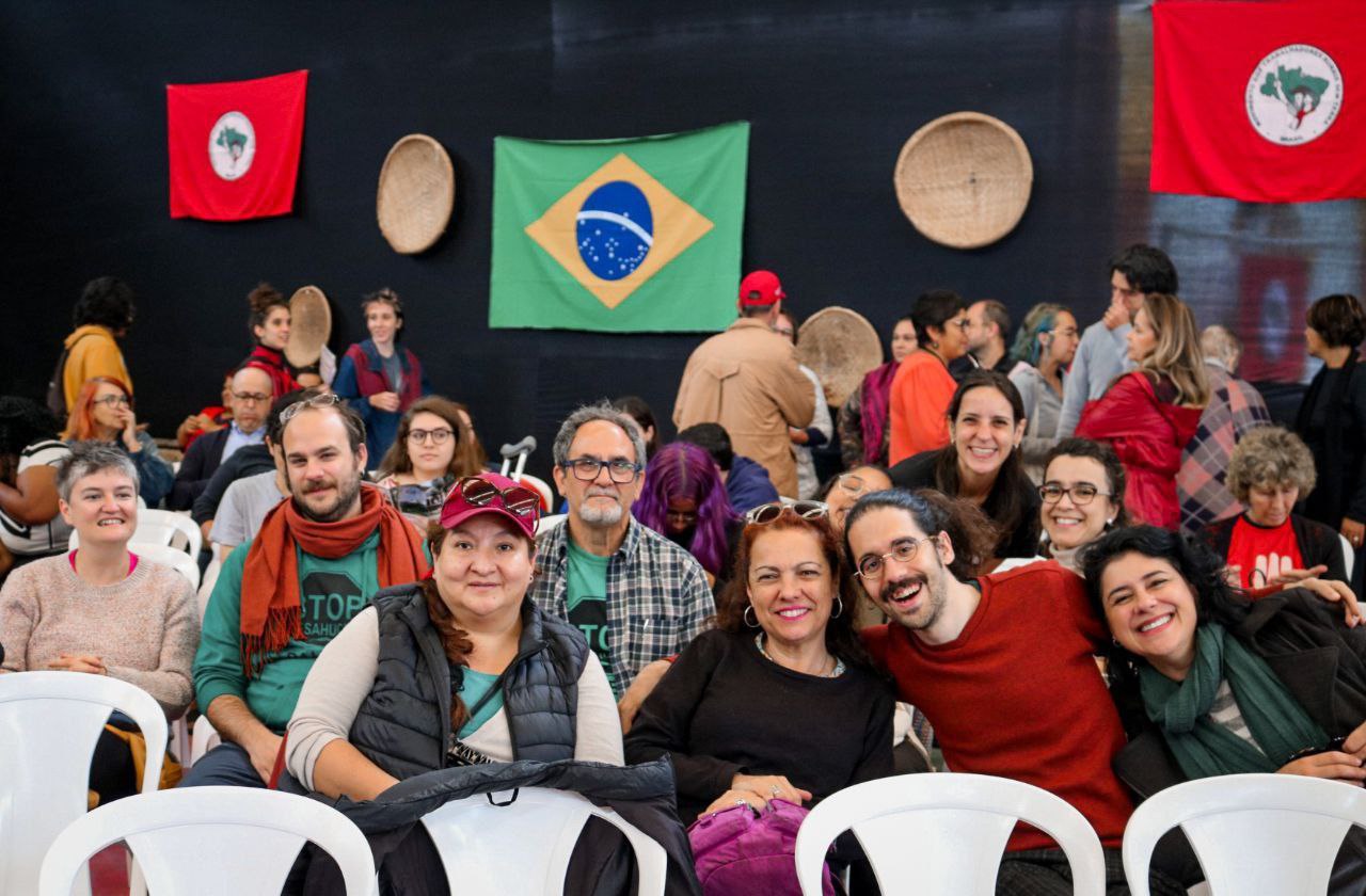 Después de los dos días de seminario, la gente del MTD y de la Fundación Rosa Luxemburg nos acompañó a conocer varias experiencias de lucha en la ciudad de São Paulo y sus alrededores. La primera, el 22 de abril, fue la Escuela Nacional Florestan Fernandes, la escuela nacional de formación del MST, que recibe a militantes de todo el mundo, especialmente de América Latina, con formaciones en organización política, en cooperativismo o en agroecología. Quienes participan en los cursos viven ahí, a 70 km de São Paulo, durante la duración del curso y participan, junto a militantes del MST, de todas las tareas necesarias para el mantenimiento de la escuela, desde el comedor al cuidado de los huertos. El día de nuestra visita se celebraba en la escuela un evento que daba inicio a la celebración de los 40 años del movimiento, que se cumplen en 2024.