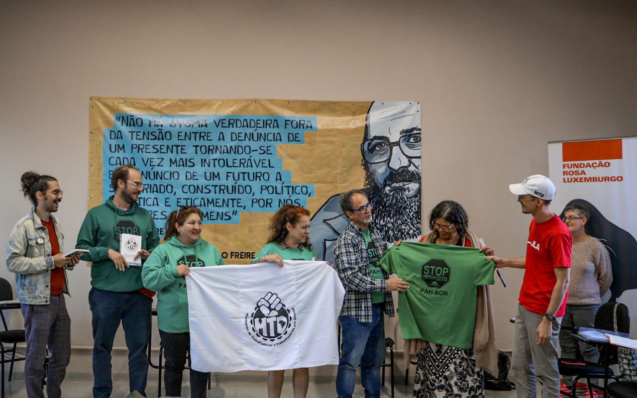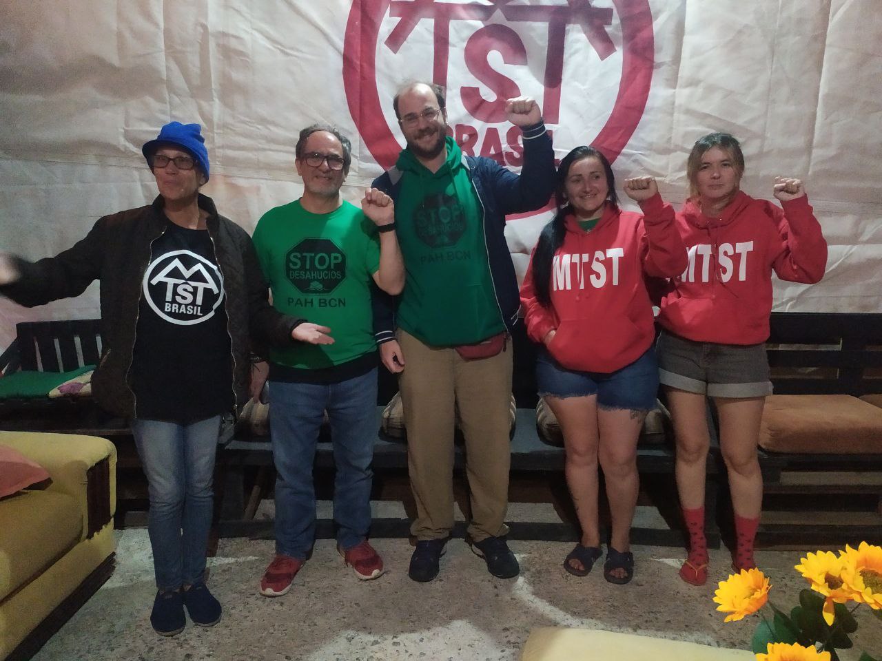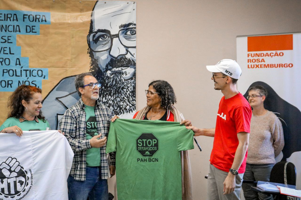 Entre el 20 y el 25 de abril, la PAH participó en un encuentro organizado en São Paulo por el Movimiento de Trabajadoras por Derechos (MTD) brasileño y la Fundación Rosa Luxemburg, para presentar la edición brasileña de La PAH: Manual de uso, editado por la fundación, y compartir experiencias con compañeras de distintos movimientos de Brasil. El MTD es un movimiento de lucha urbana, que nació en el sur de Brasil en el año 2000, inspirado por el Movimiento de Trabajadores Rurales Sin Tierra (MST) como Movimiento de Trabajadores Desempleados, pero que en 2015 se refundó para poner el foco en la defensa de los derechos de trabajadoras y trabajadores, con el lema “Derecho a trabajar, trabajar con derechos” y está presente en 14 de los 26 estados de Brasil.