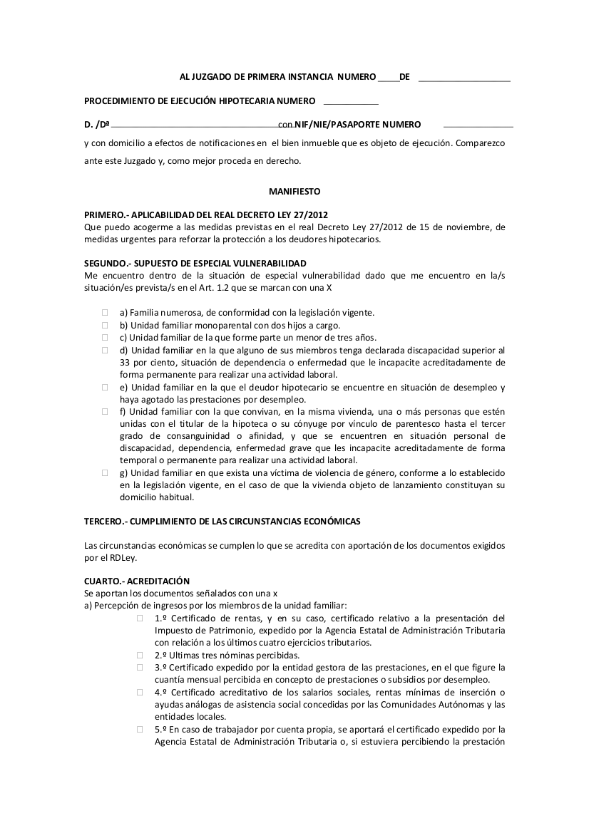 Documento 3. Modelo escrito obligatoriedad intermediación con la administración para desahucios hipotecarios